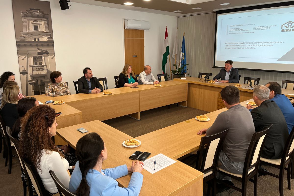 Tamási, 2025. április 17. – Ünnepélyes nyitórendezvénnyel vette kezdetét a „Tamási központú agglomeráció szennyvízelvezetésének és -tisztításának fejlesztése” című projekt megvalósítása. A Tamási Város Önkormányzatának Dísztermében tartott eseményen Porga Ferenc polgármester köszöntötte a résztvevőket, majd részletes tájékoztatót adtak a projekt jelenlegi állásáról és a következő fejlesztési lépésekről. A tájékoztatót Horváth Csaba, az Alisca Bau Zrt. területi vezetője folytatta, aki egy látványos ppt-ben mutatta be a projekt indulását és azóta történt fejlesztéseket.